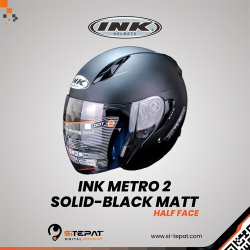 INK Metro 2 Solid Helm Half Face – merupakan open face helmet yang didesain trendy. Helm half face ini dilengkapi dengan double visor, anti theft system (anti maling) untuk menghindari resiko pencurian, alphabet system sehingga helm dapat dikreasikan dengan nama sesuai keinginan pemakai, berstandarisasi DOT dan SNI 1811-2007, quick realease safety buckle, serta bagian dalam helm yang mudah dilepas & dicuci.