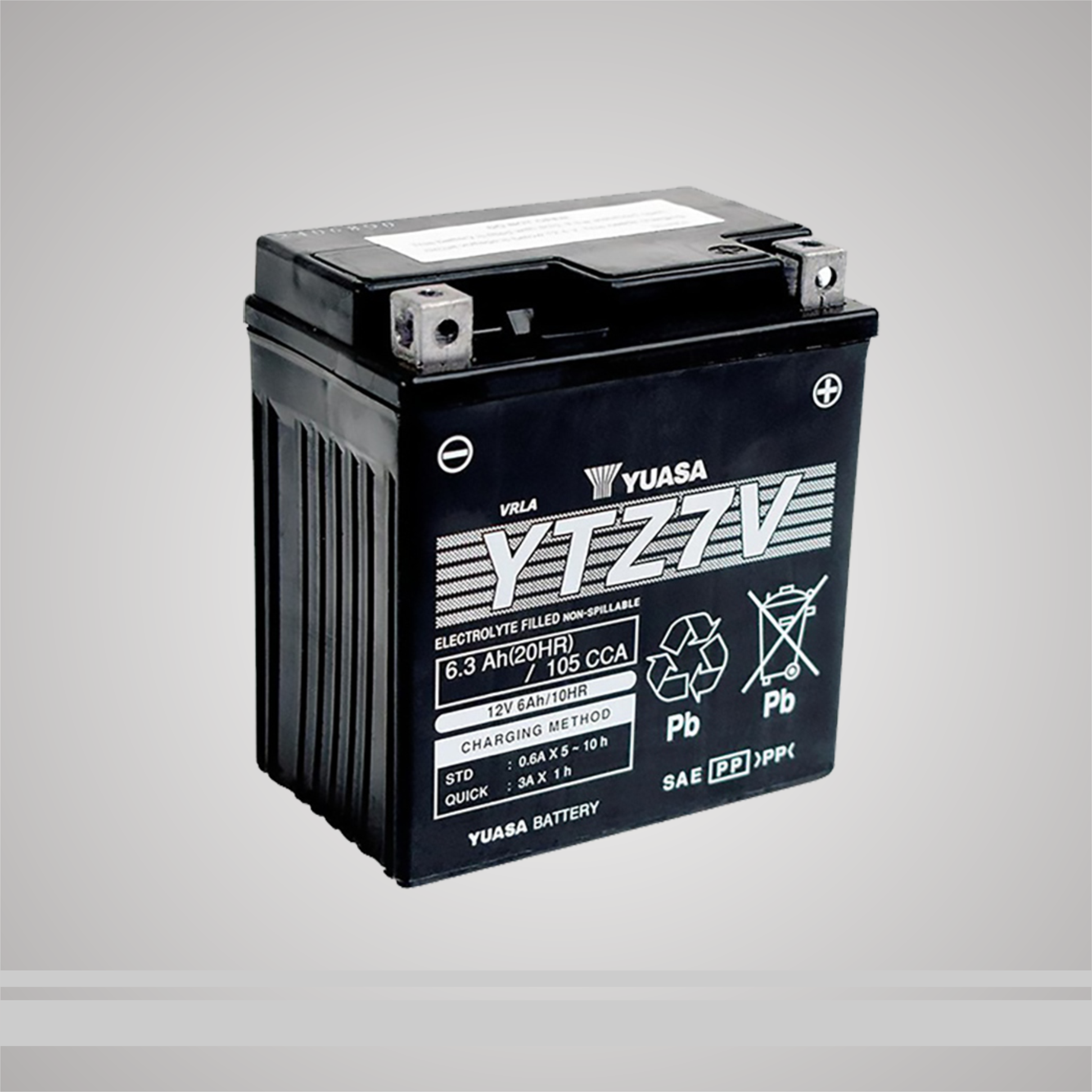 SPESIFIKASI Tegangan (V) : 12 Kapasitas(Ah) (10 Hr) : 6 Ukuran Maksimum (mm) P (Panjang) : 114 L (Lebar) : 71 T (Tinggi) : 121 Laju Pengisian (A) : 0.6 Isi Elektrolit (L) : 0.338
